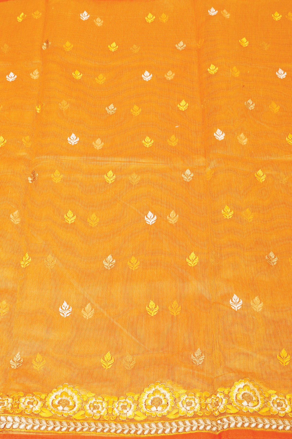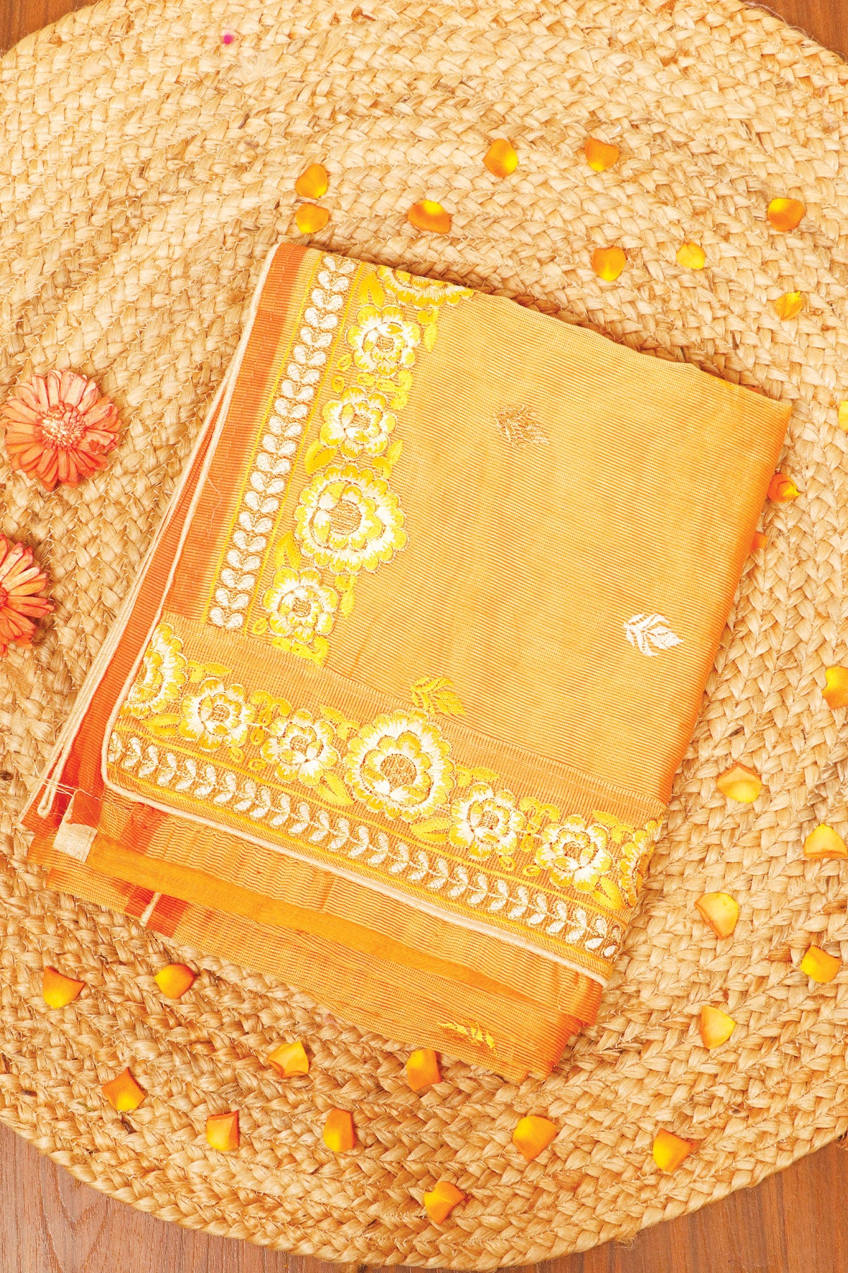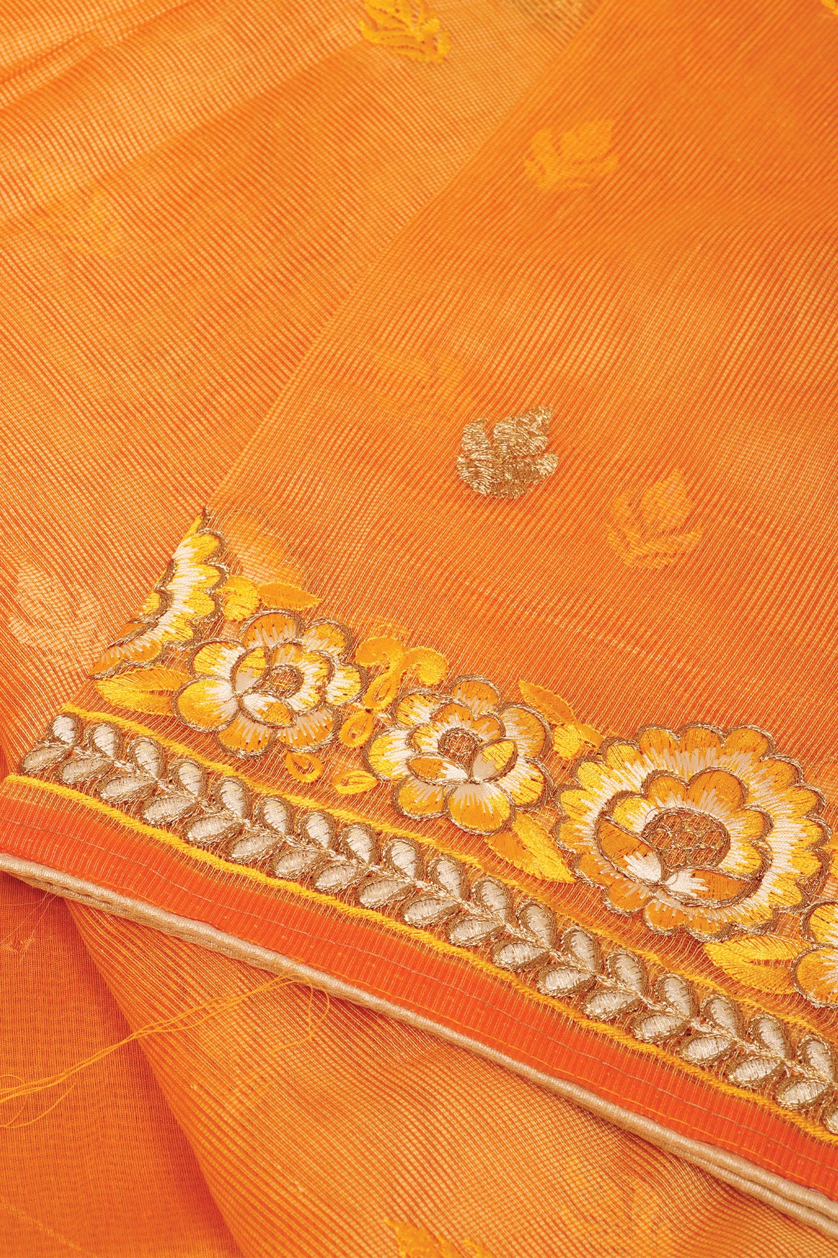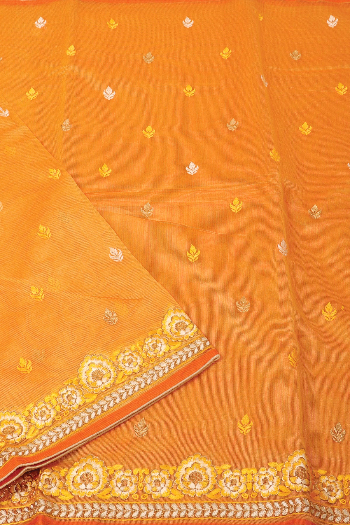 Previous NextOrange semi silk cotton saree with floral embroidery