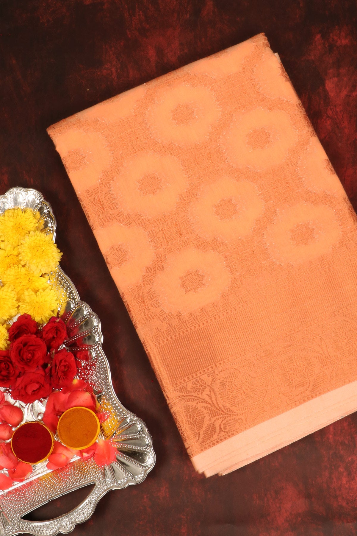 Peach Semi Cotton Saree