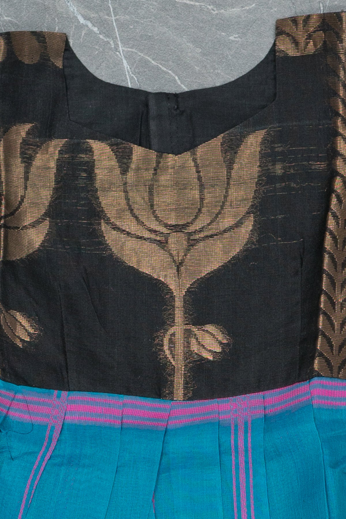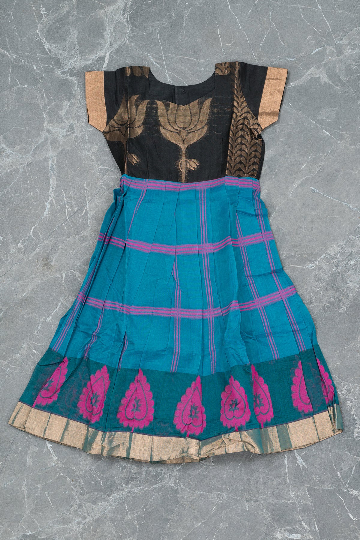 Black and Blue Kids Gown in Silk Cotton