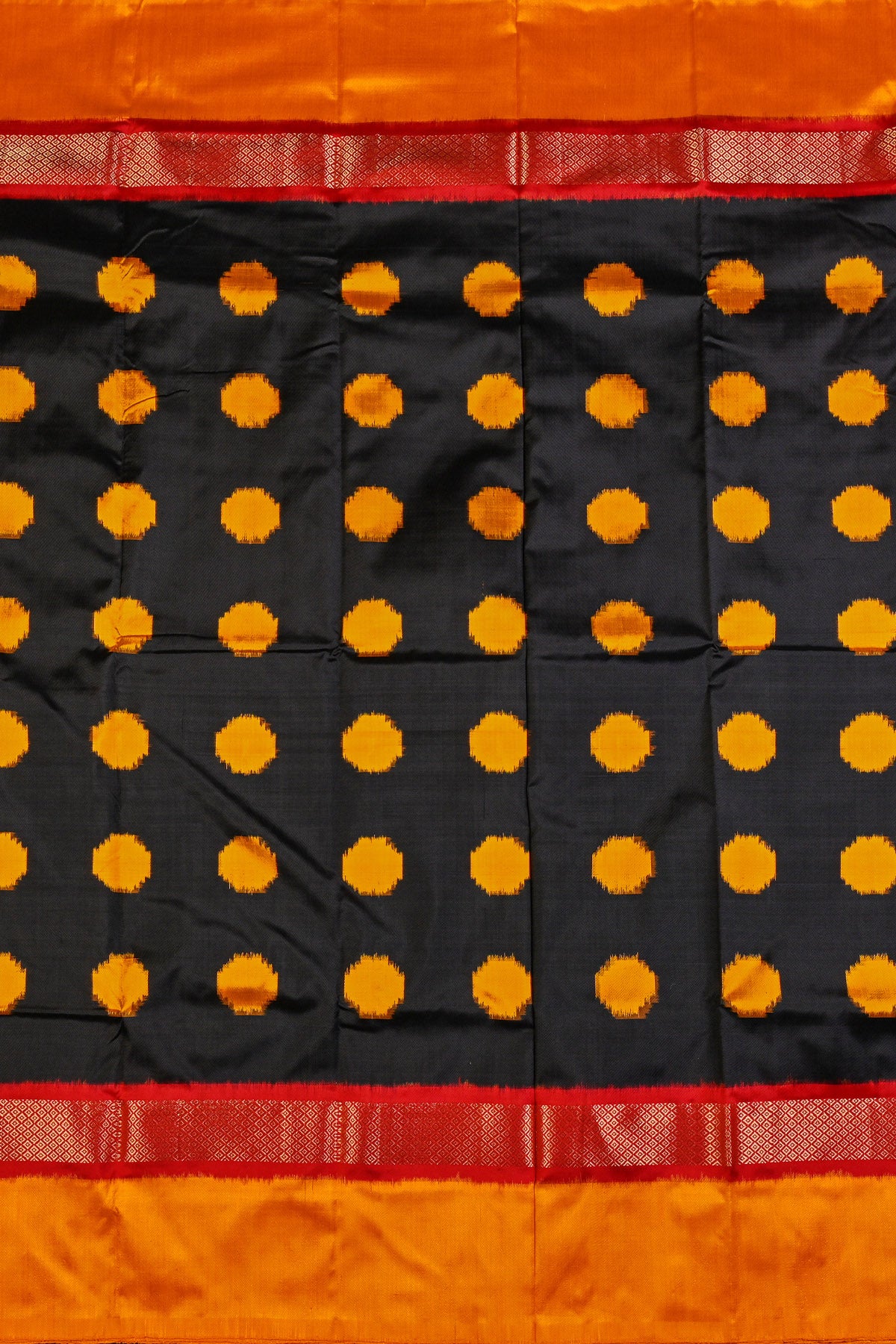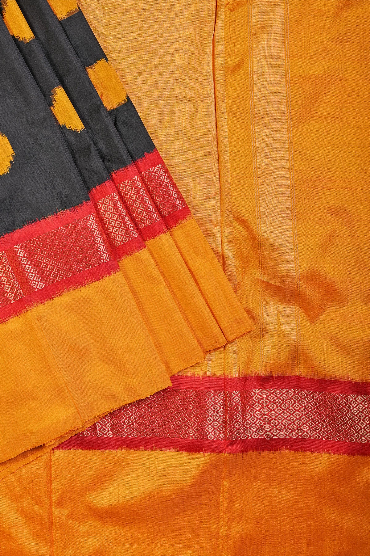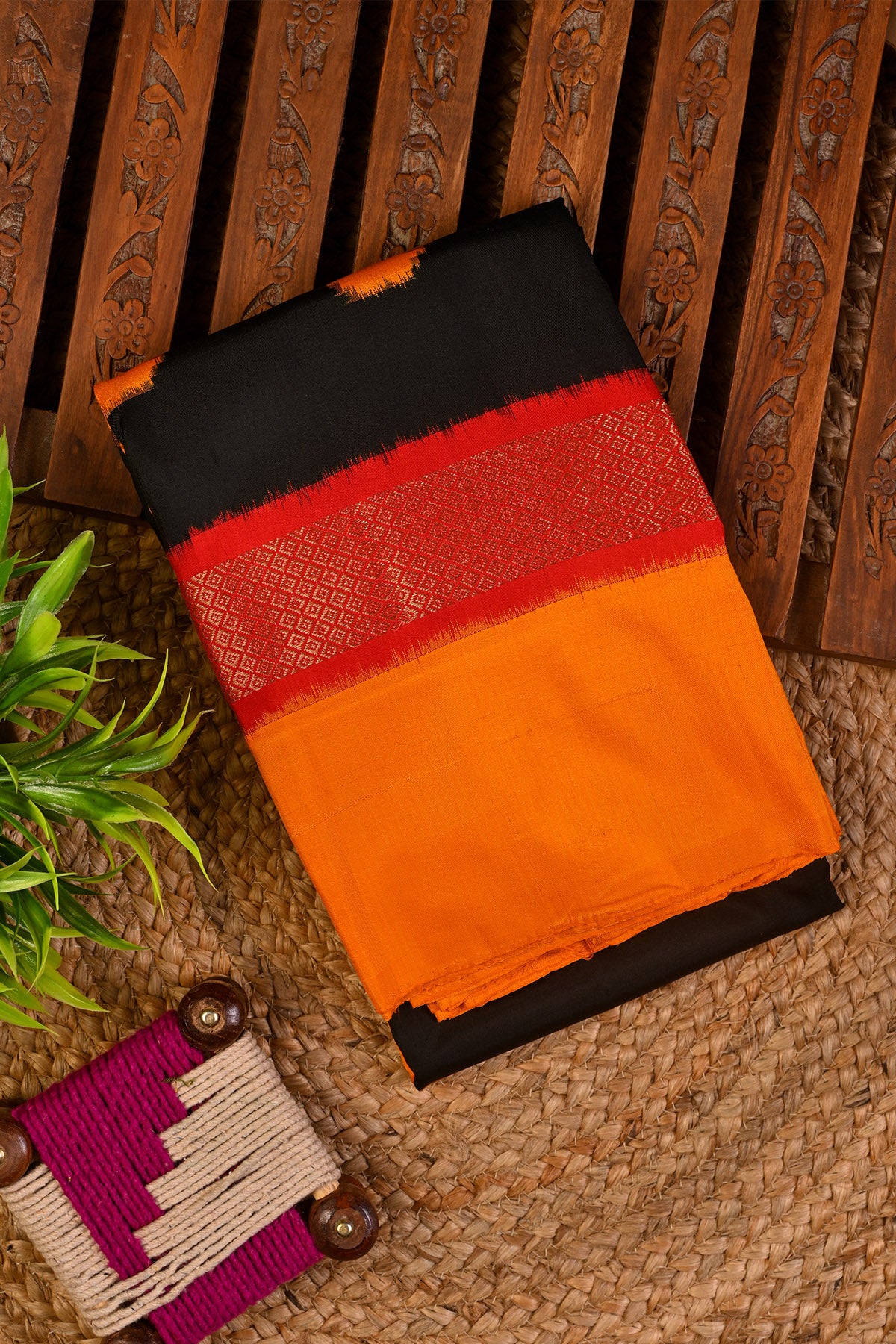 Black and Orange Ikhat Kanchipuram Silk Saree
