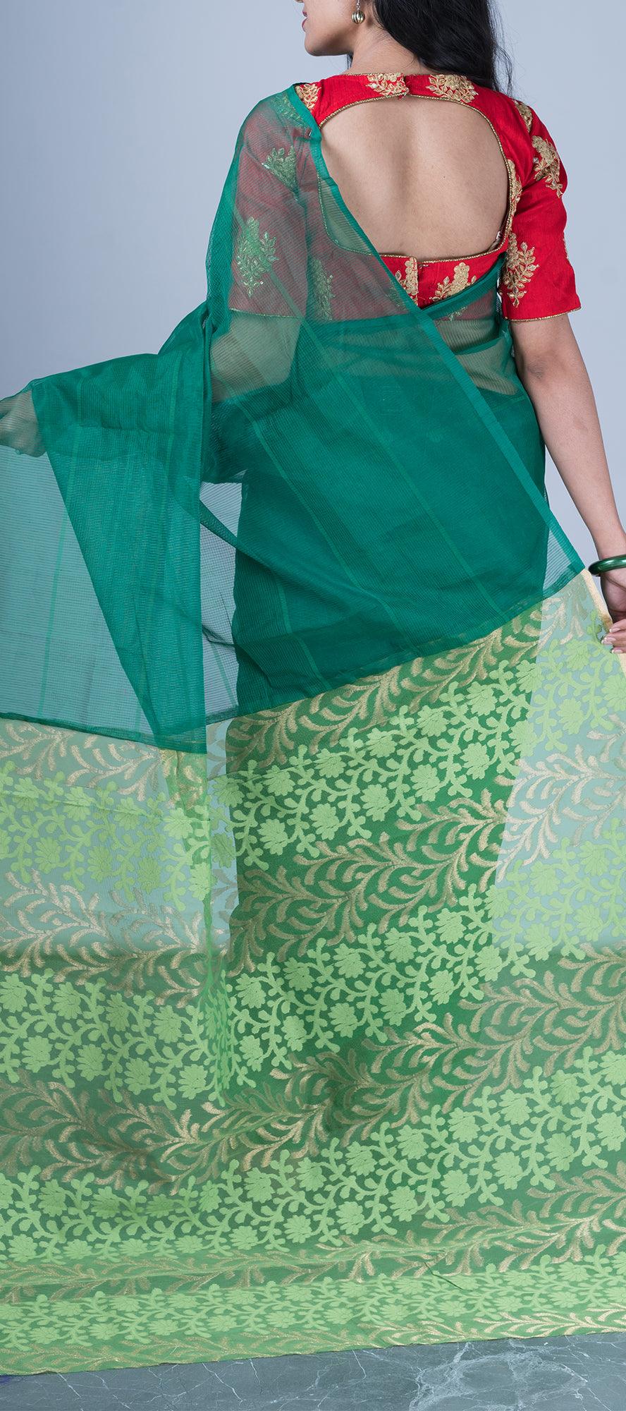Dark Green Jute Cotton Saree