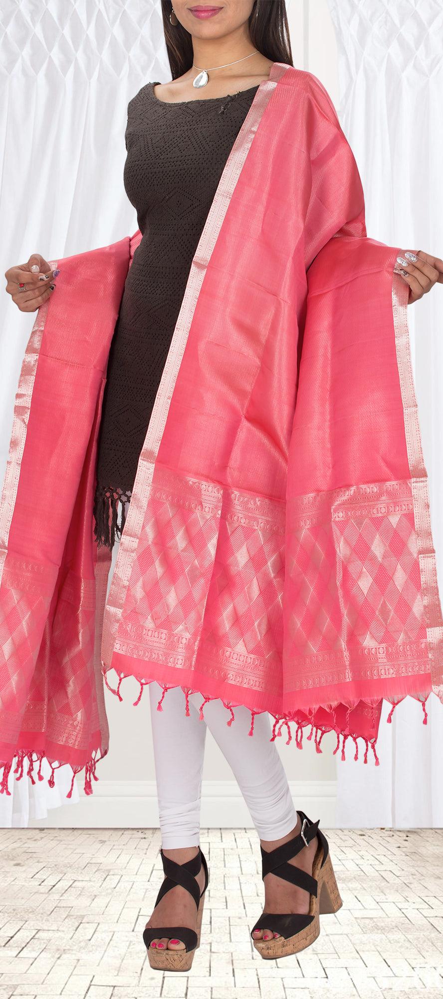 Peach & Silver Pure Kanchipuram Silk Dupattas