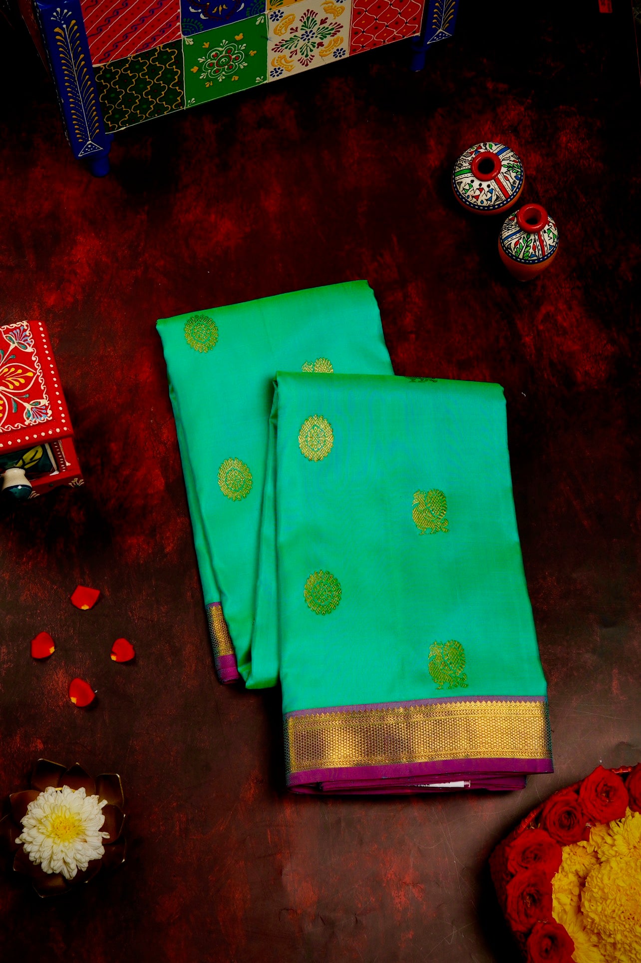 Turquoise Blue Kanchipuram Silk Saree
