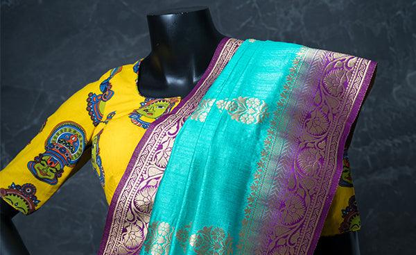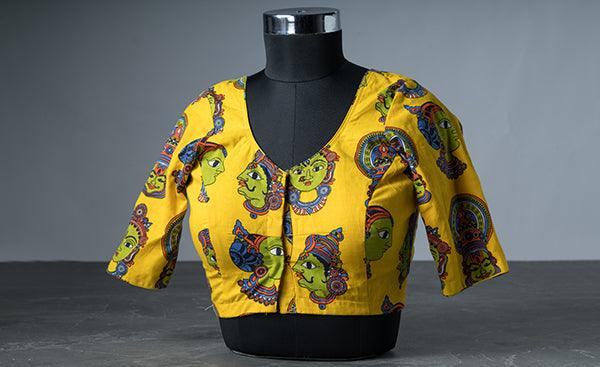 Yellow Cotton Readymade Blouse with Kalamkari Prints