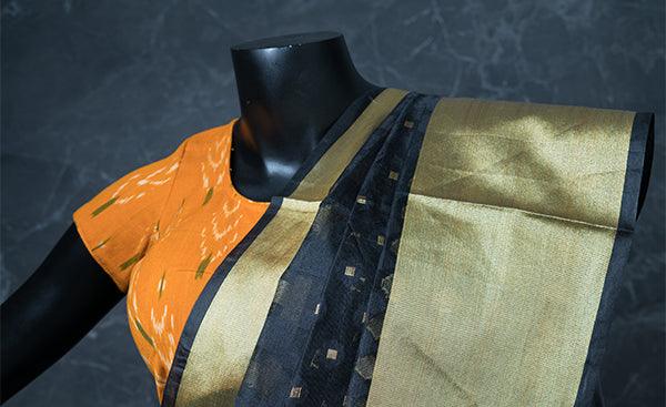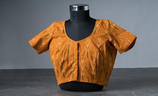 Mustard Cotton Readymade Blouse with Ikhat Prints