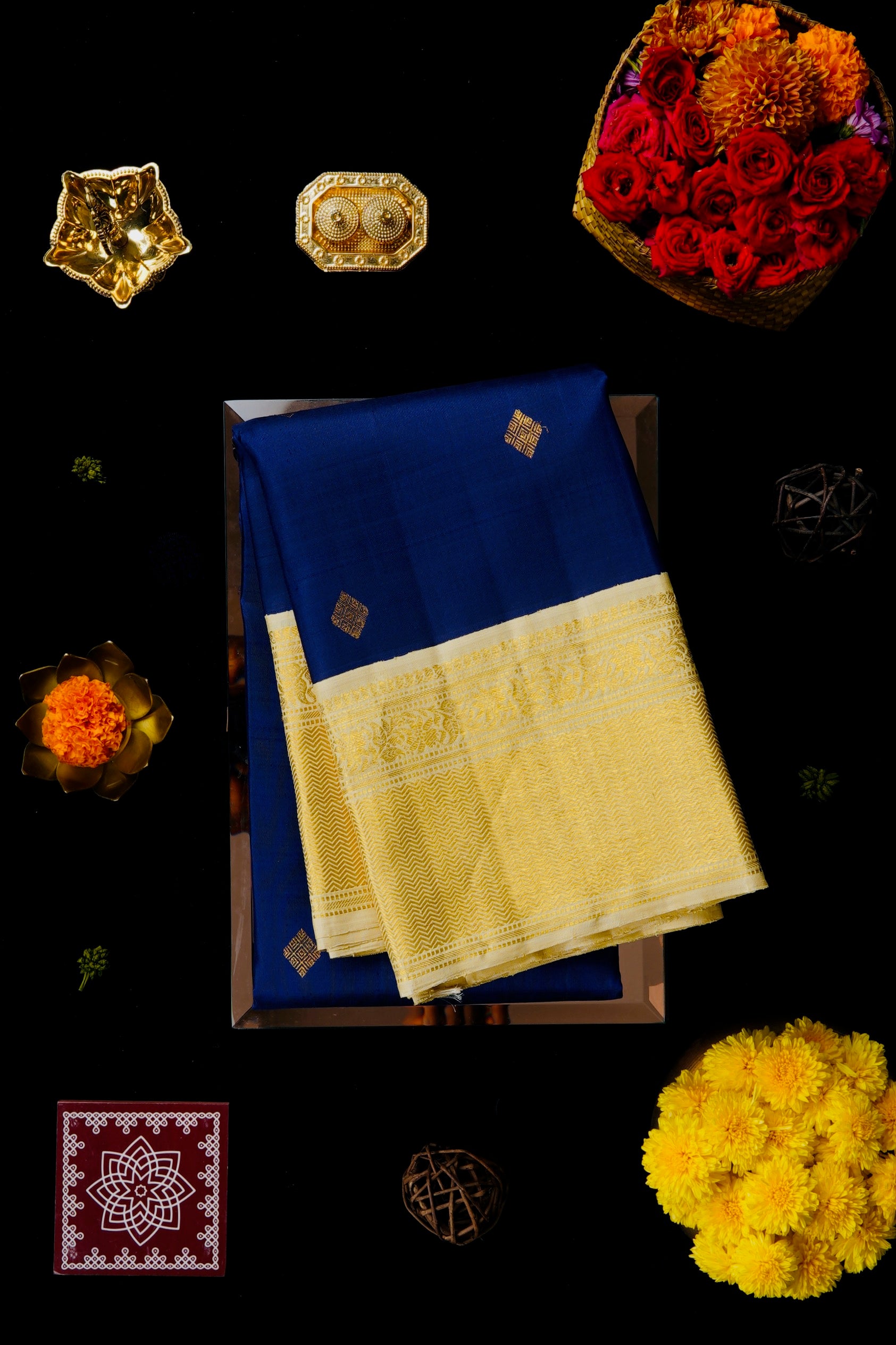 Midnight Blue Kanchipuram Silk Saree