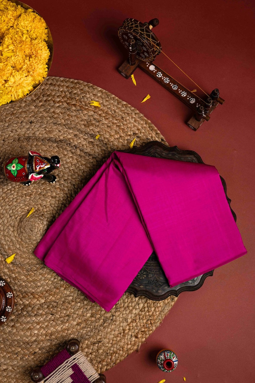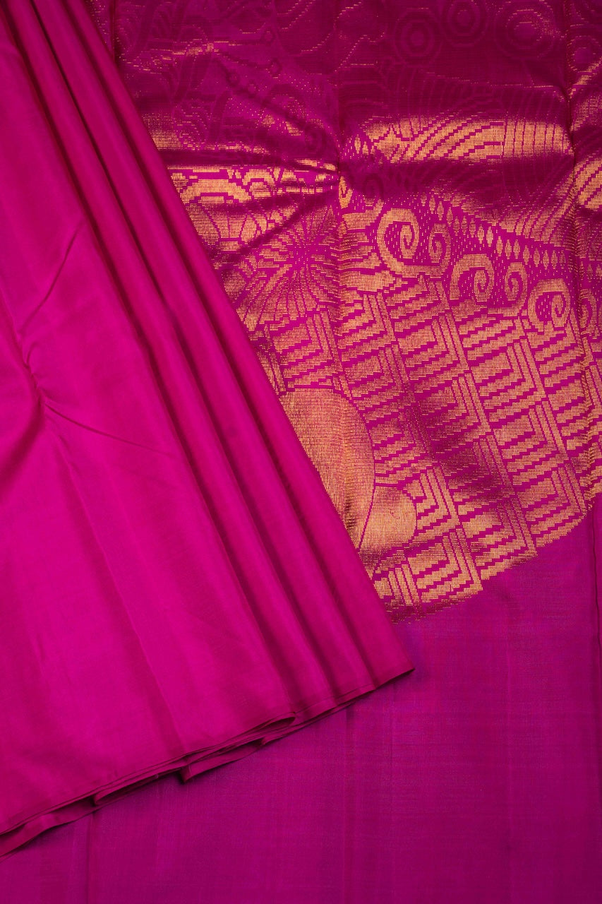 Previous NextPlain pink kanchipuram silk saree with a magnificent Zentangle bhutta taking over the pallu.