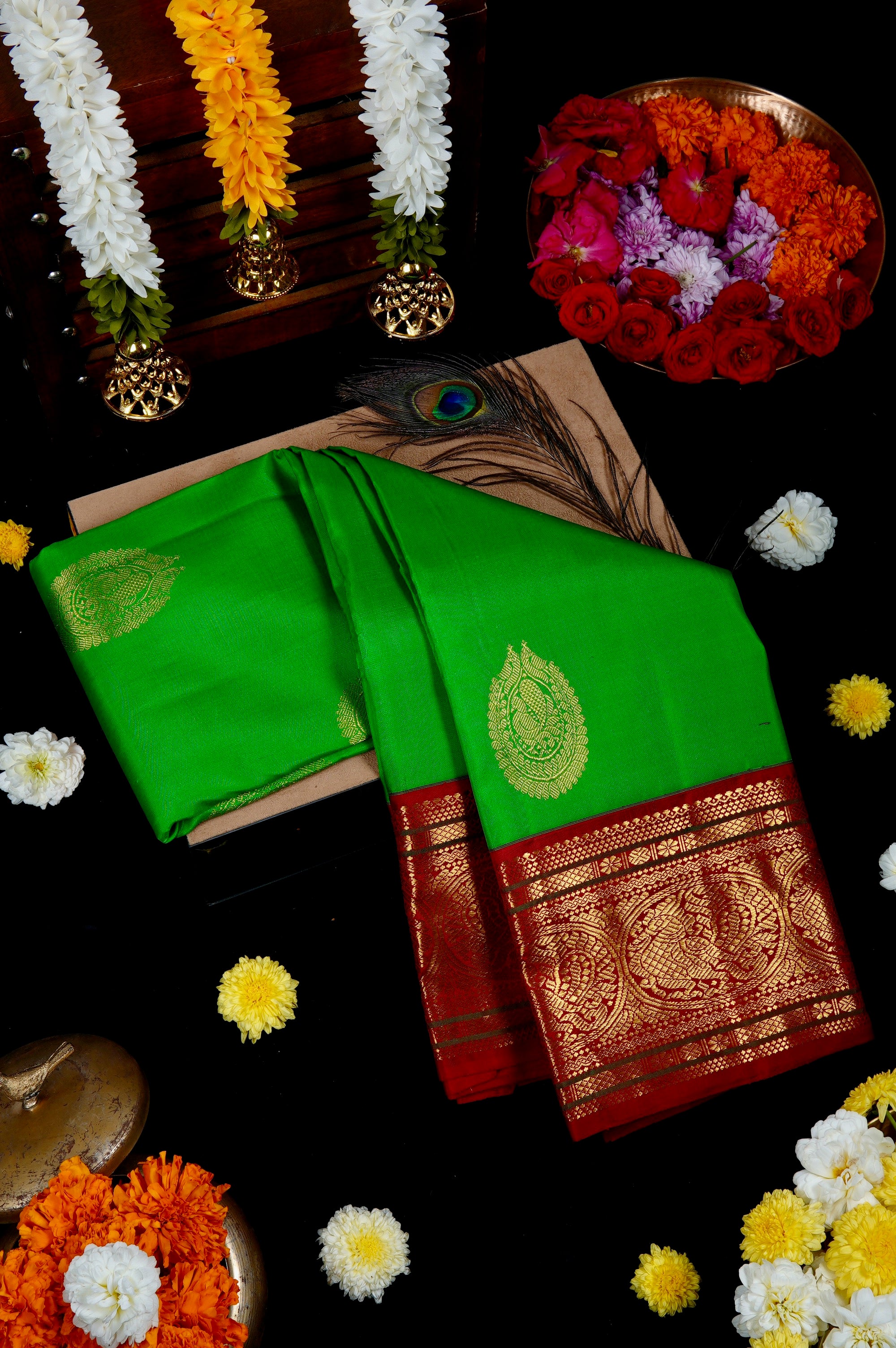 Lime Green Kanchipuram Silk Saree