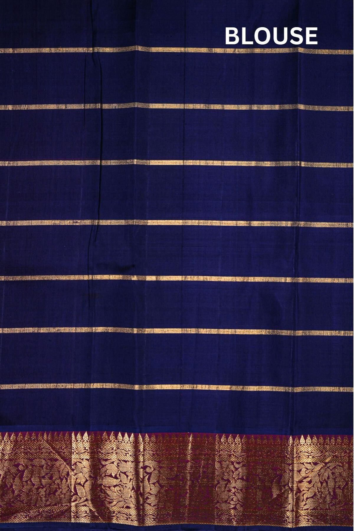 Raspberry Red with Navy Blue Kanchipuram Silk Saree